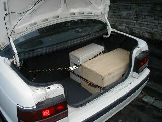 | Kofferraum mit Rechner und 2. Subwoofer | |