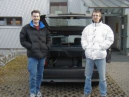 im Auto von Sebby und tüfteln an der Anlage, Klangverbesserung hier,