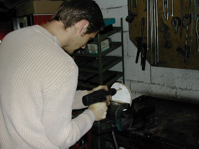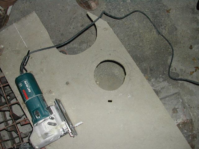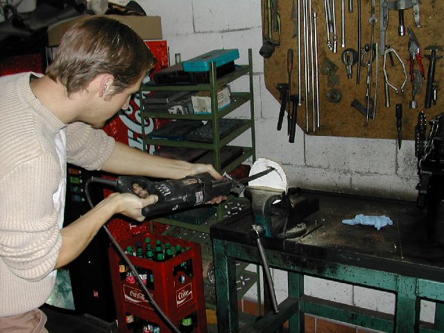 Erst mal ein Loch bohren, um mit unserem Fuchsschwanz das Loch aussägen zu können. Stichsäge war blöderweise keine zur Hand. |