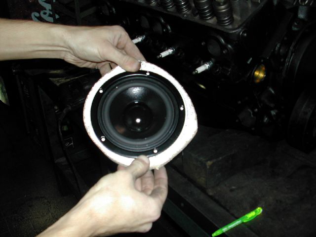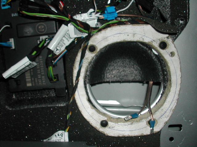 So festgeschraubt ist er auch noch. Sitzt bombenfest. Die Schrauben mussten wir versenken, da der W130S ja den gleichen Durchmesser hat wie die Originallautsprecher hat und er sonst auf den Schrauben aufsitzen würde. Wenn man keinen Senkbohrer zur Hand hat macht man das so wie wir durch "herumeiern" des Bohrers bis die gewünschte Senktiefe erreicht ist. :-) |