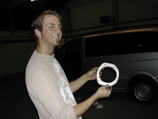 Nun noch schnell die Befestigungslöcher der Originallautsprecher übertragen und bohren und dann... |